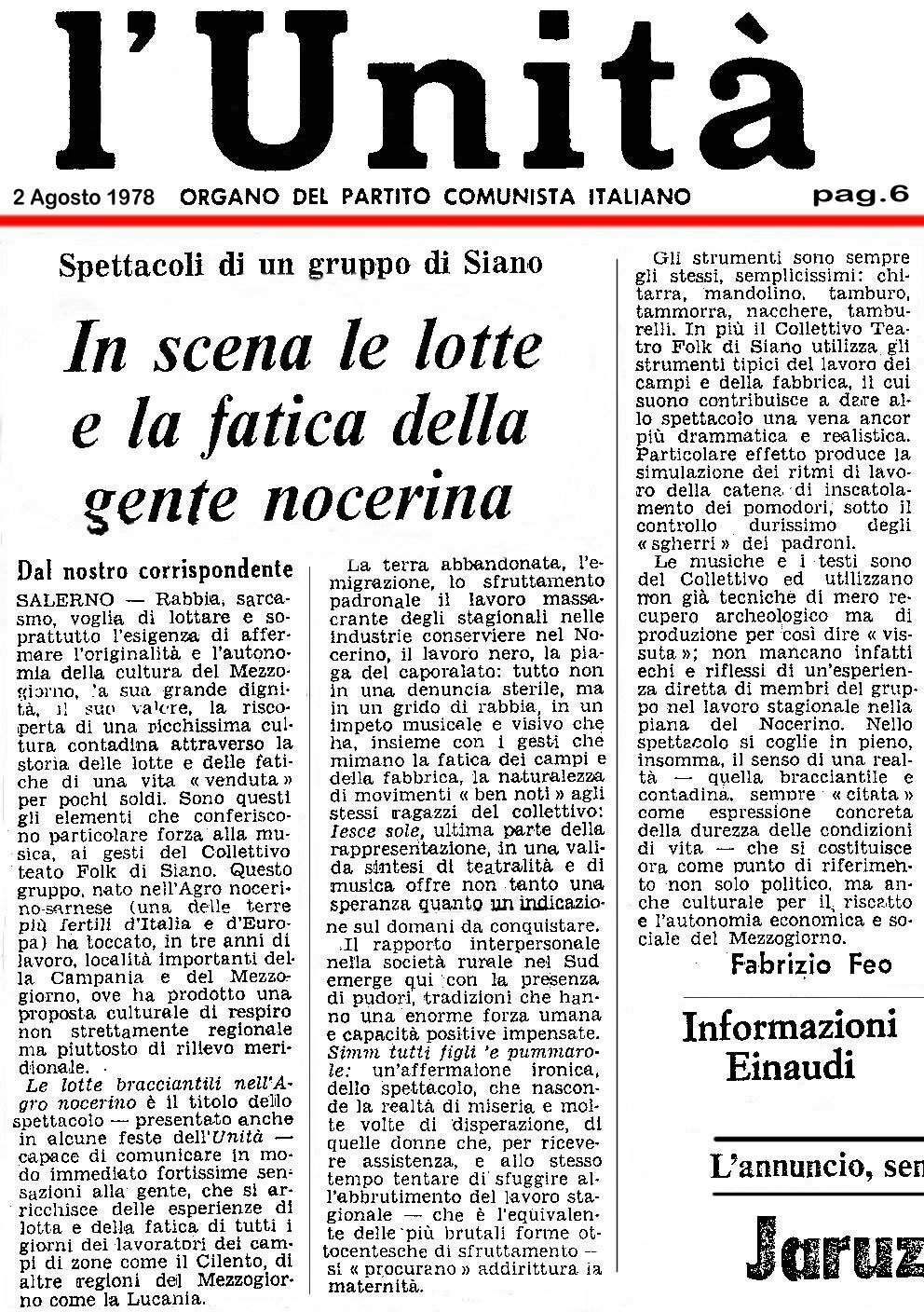 FEO,giornalista Rai – L’Unità (leggi intero articolo). Il