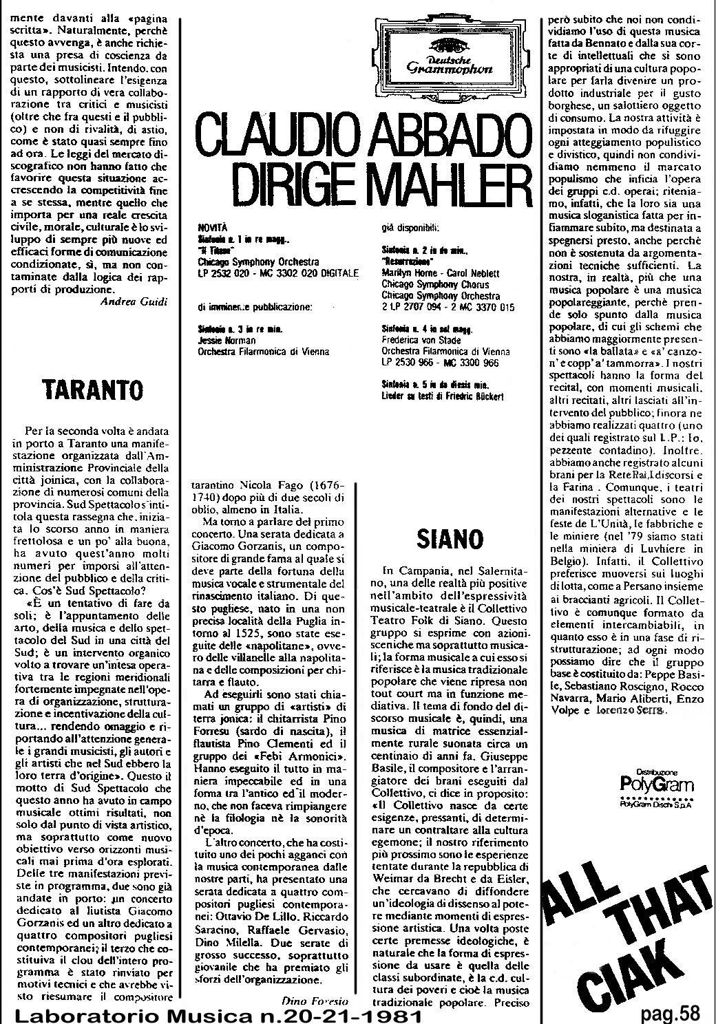 “H� sule 'nu garofene” 1981; DISCOGRAFIA: �
